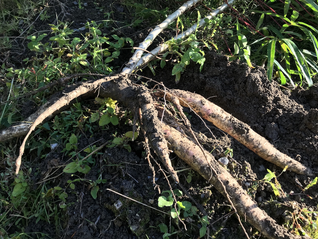 今年の収穫予定は10月下旬。28日からにしています。いよいよ収穫が迫ってまいりましたが、お芋の育ち具合いが心配なところです。今年は大雨が何度も襲ってきましたので。今日は試しにちょっと芋を掘って様子をみ...